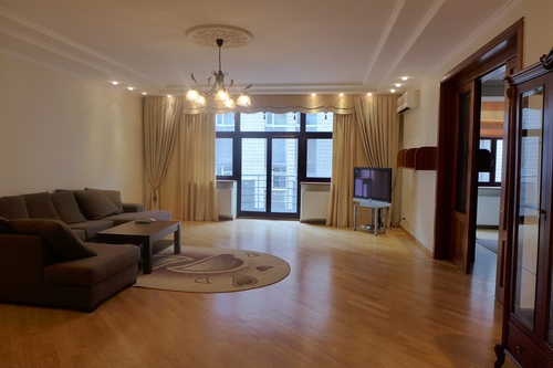 4 room apartment for rent located at new elite building with security and underground parking place. Total area is 186 m2. 3 bedrooms, 2 bathrooms, built in wardrobe. Unfurnished. Underground parking place. Asking rent 3000 USD per month.