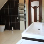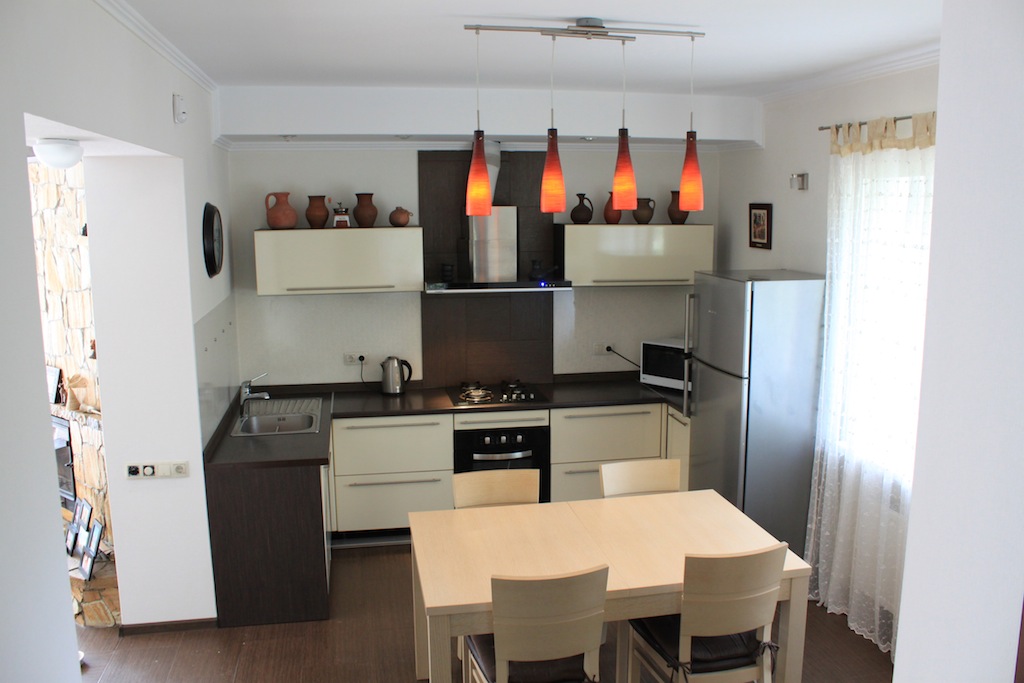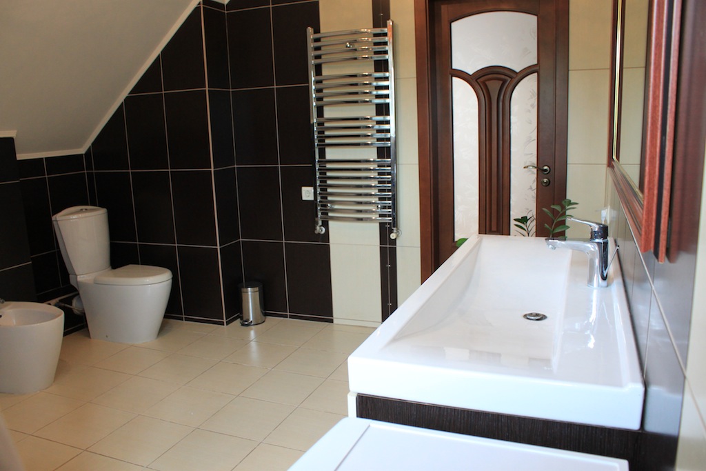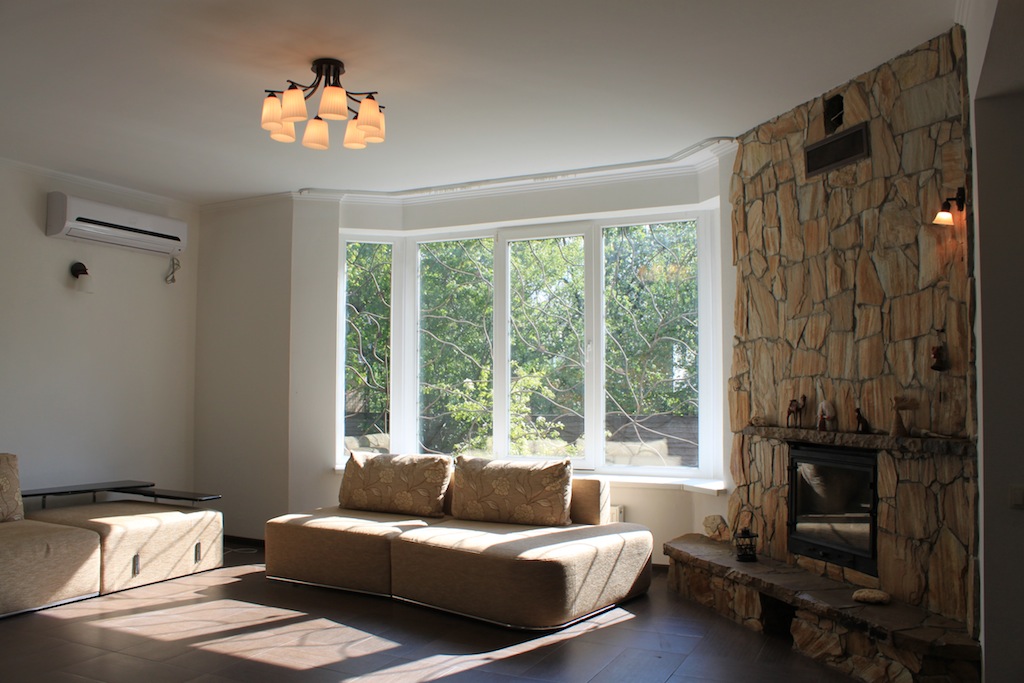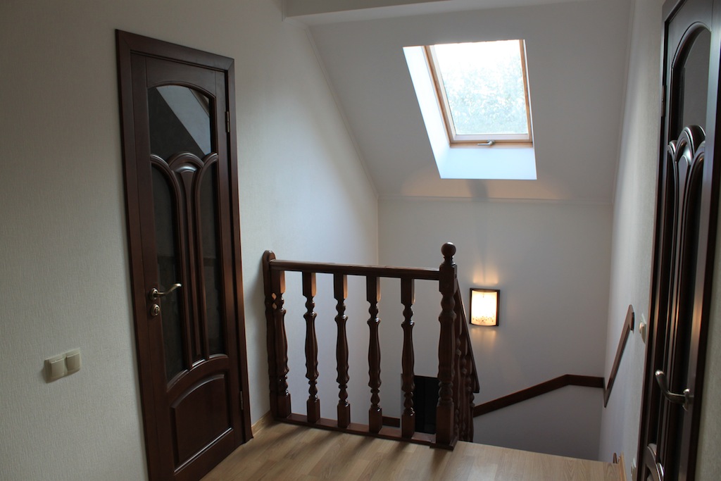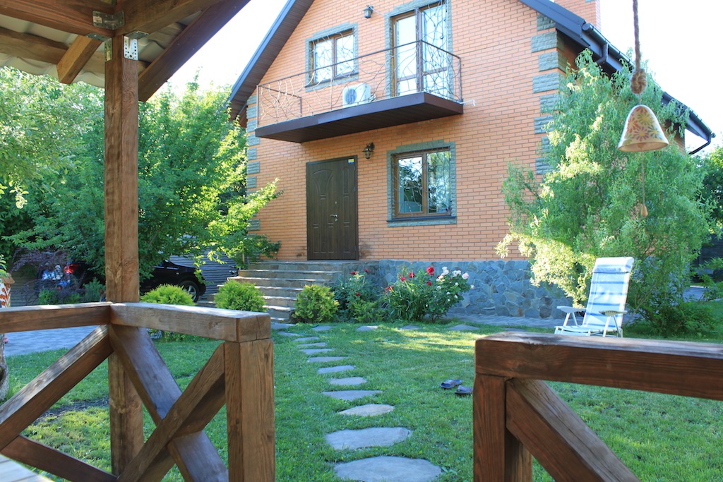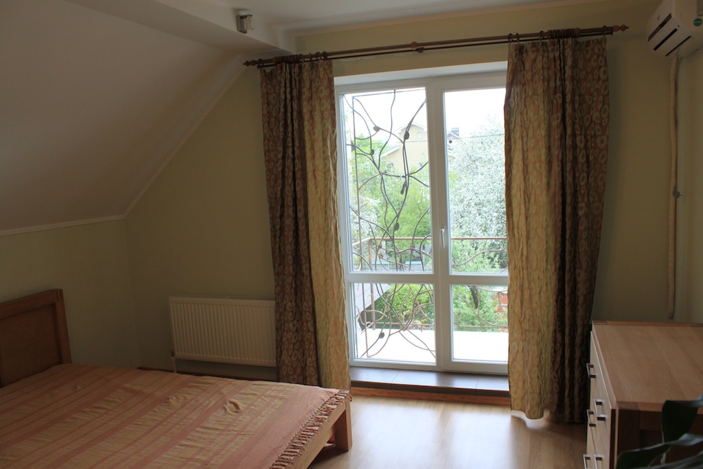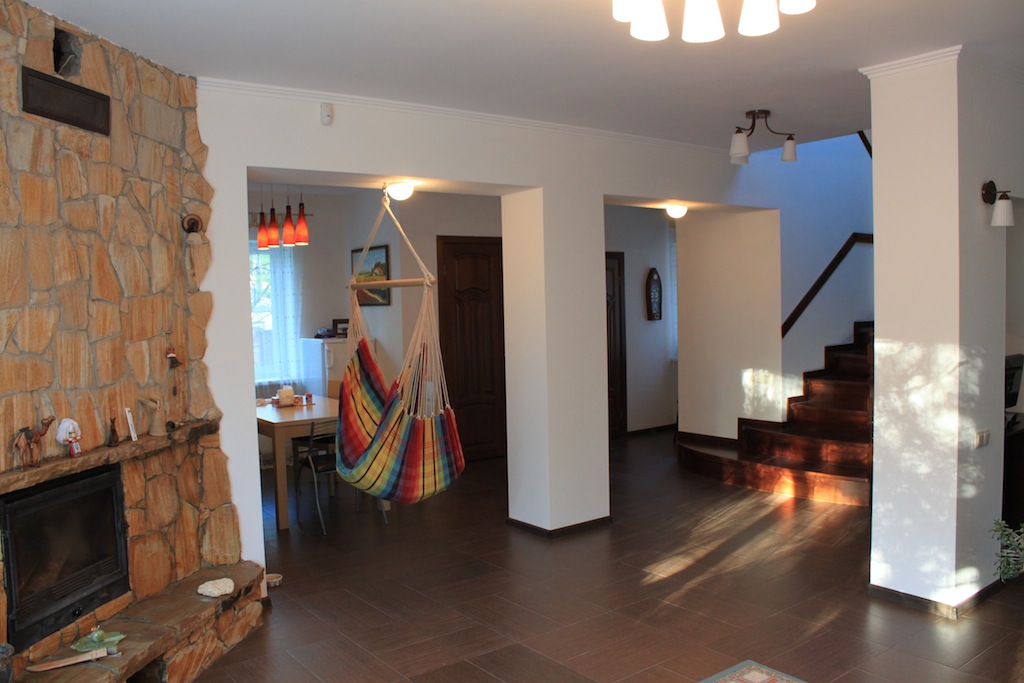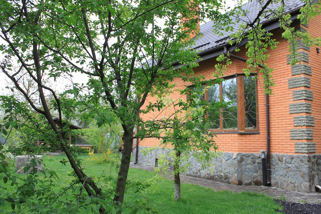 Western standard 3 stores house. Nearest subway station is Nivki. Total area 247 m2. 3 level. 3 bedrooms. 2 bathrooms. Living room – 40 m2. Sauna. Garage. Small garden around.
