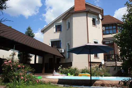 3 level house at Pechersk district. Total area is 550 m2. 4 bedrooms, living room 40 m2 with a fire place, fitted kitchen, dining area with access to the garden, 3 walk-in closets, 4 bathrooms, sauna, 2 terraces, swimming pool, garage for 2 car. 12 hundreds of land. Garden.